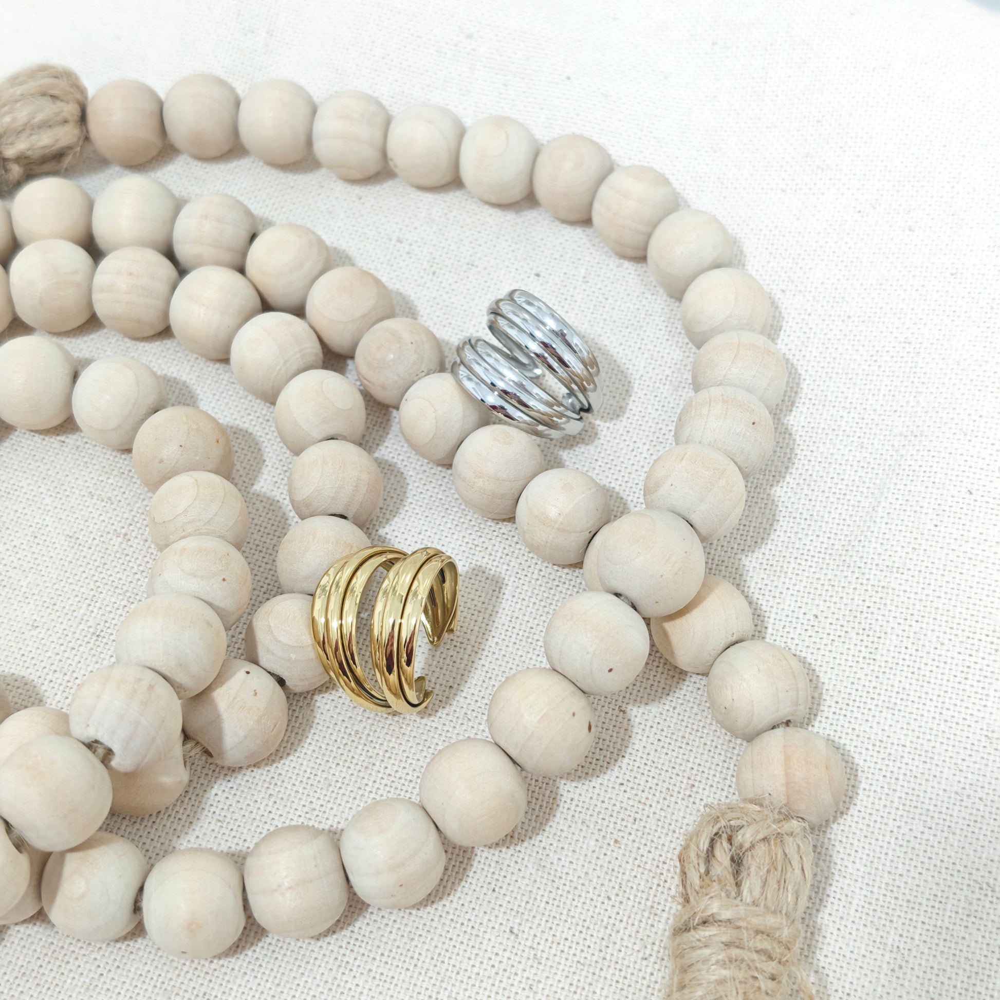 Estos pendientes combinan elegancia y carácter en una sola pieza. Su diseño de aros entrelazados crea un efecto voluminoso y sofisticado, perfecto para elevar cualquier look, desde el más casual hasta el más elegante.