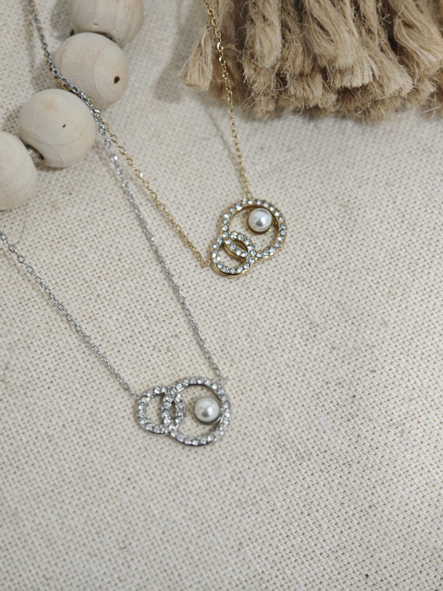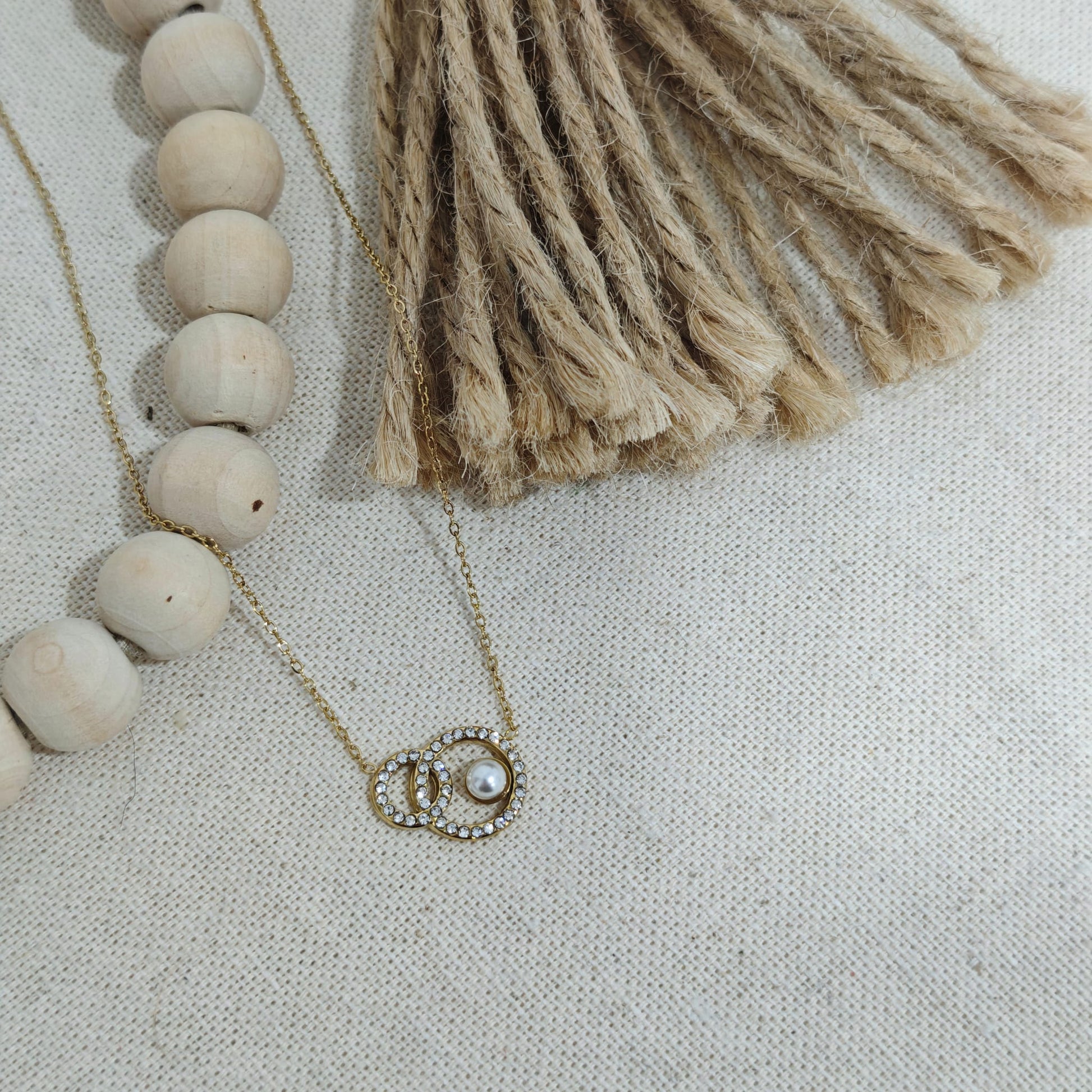El Collar Infinity Pearl destaca por su delicado diseño de aros entrelazados, adornados con pequeños cristales brillantes y una perla central que aporta luz y sofisticación. Un símbolo de unión, equilibrio y elegancia atemporal.