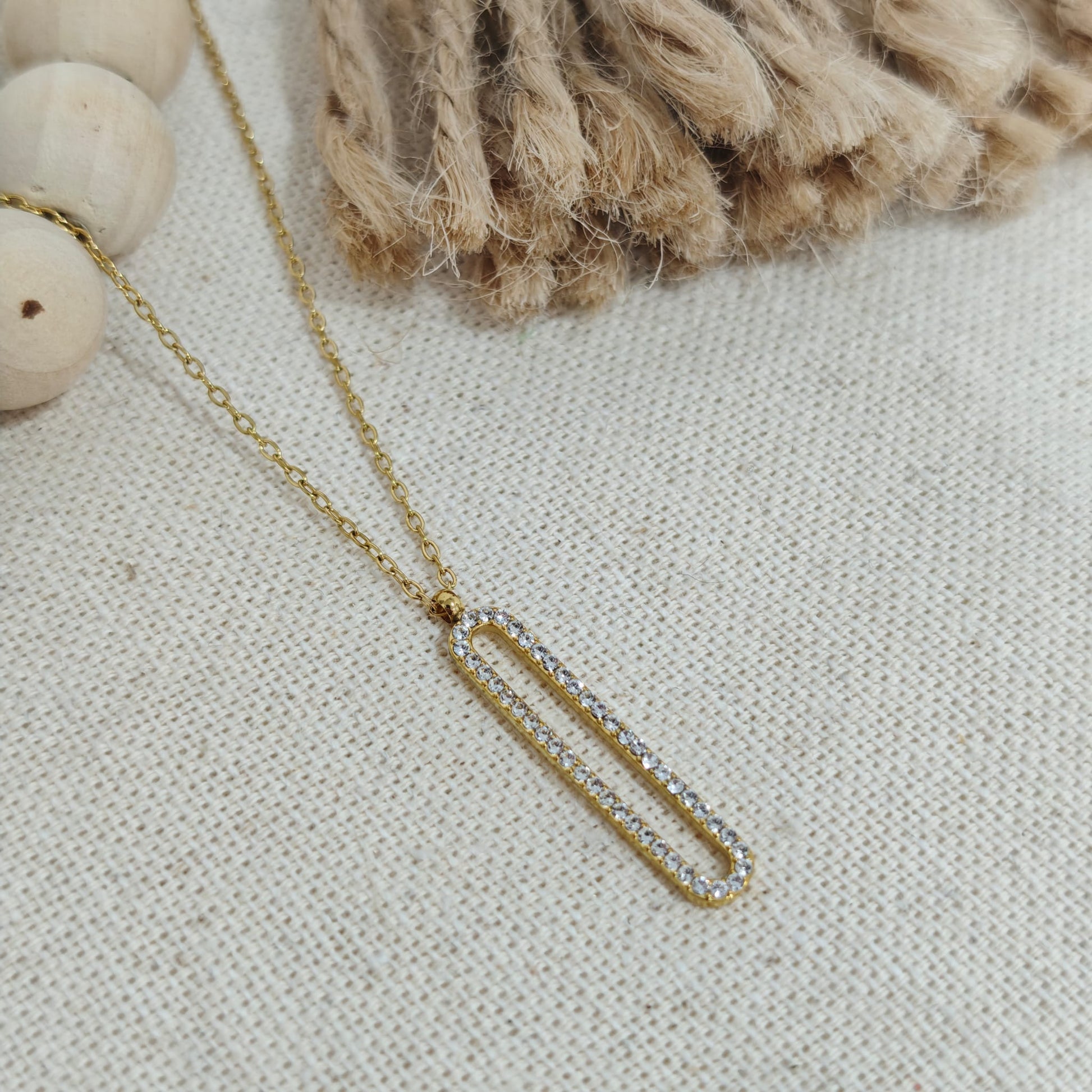 El Collar Línea Dorada destaca por su colgante alargado de diseño limpio y moderno, decorado con circonitas brillantes que aportan luz sin excesos. Su acabado dorado y su forma estilizada alargan visualmente el cuello, convirtiéndolo en una joya muy favorecedora.