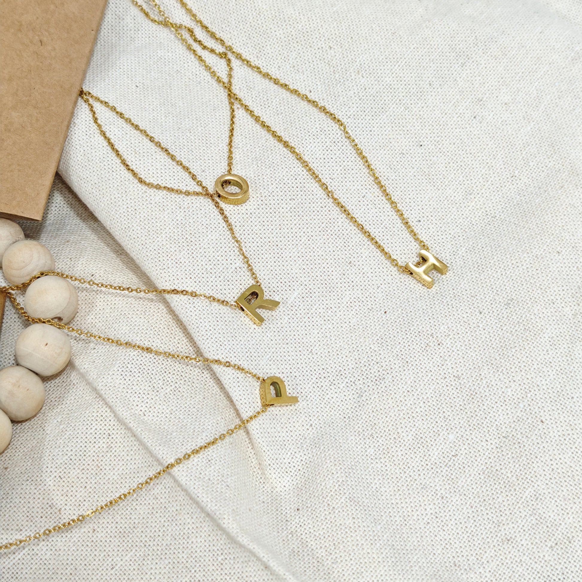 Collares minimalistas con colgante de letra, perfectos para llevar tu inicial o la de alguien especial siempre contigo. Disponibles en acabado dorado y plateado, resistentes al agua y al uso diario gracias a su fabricación en acero inoxidable de alta calidad.