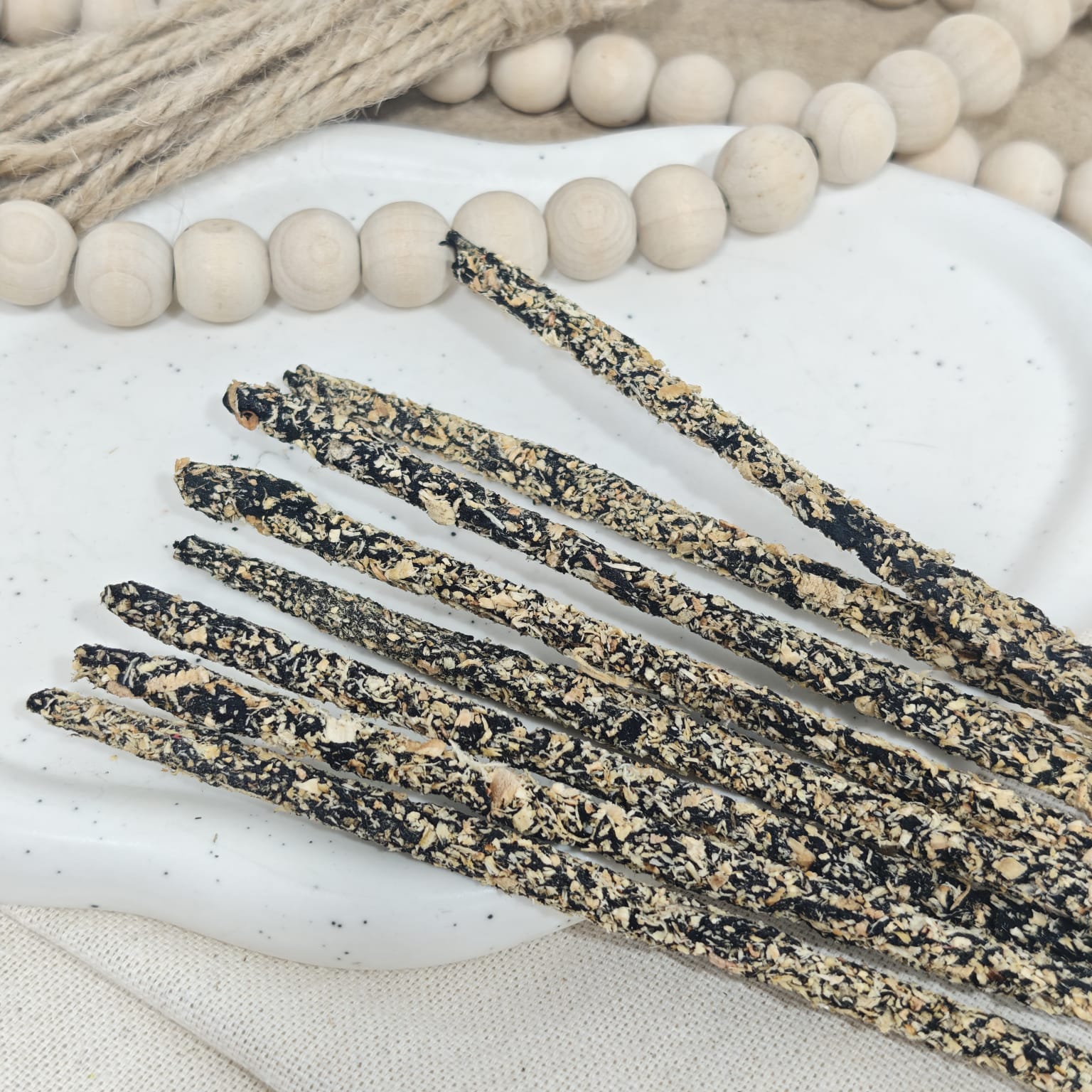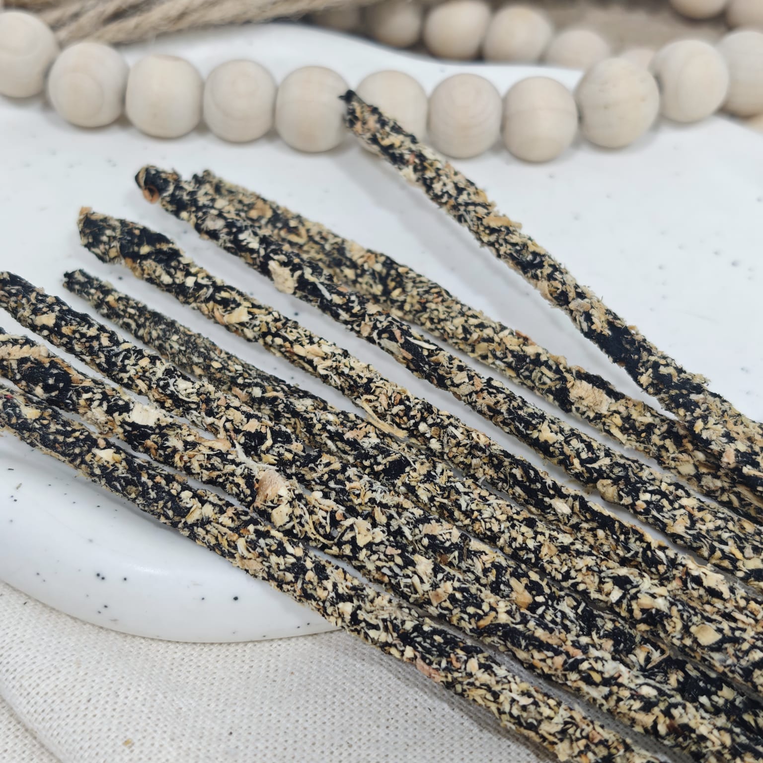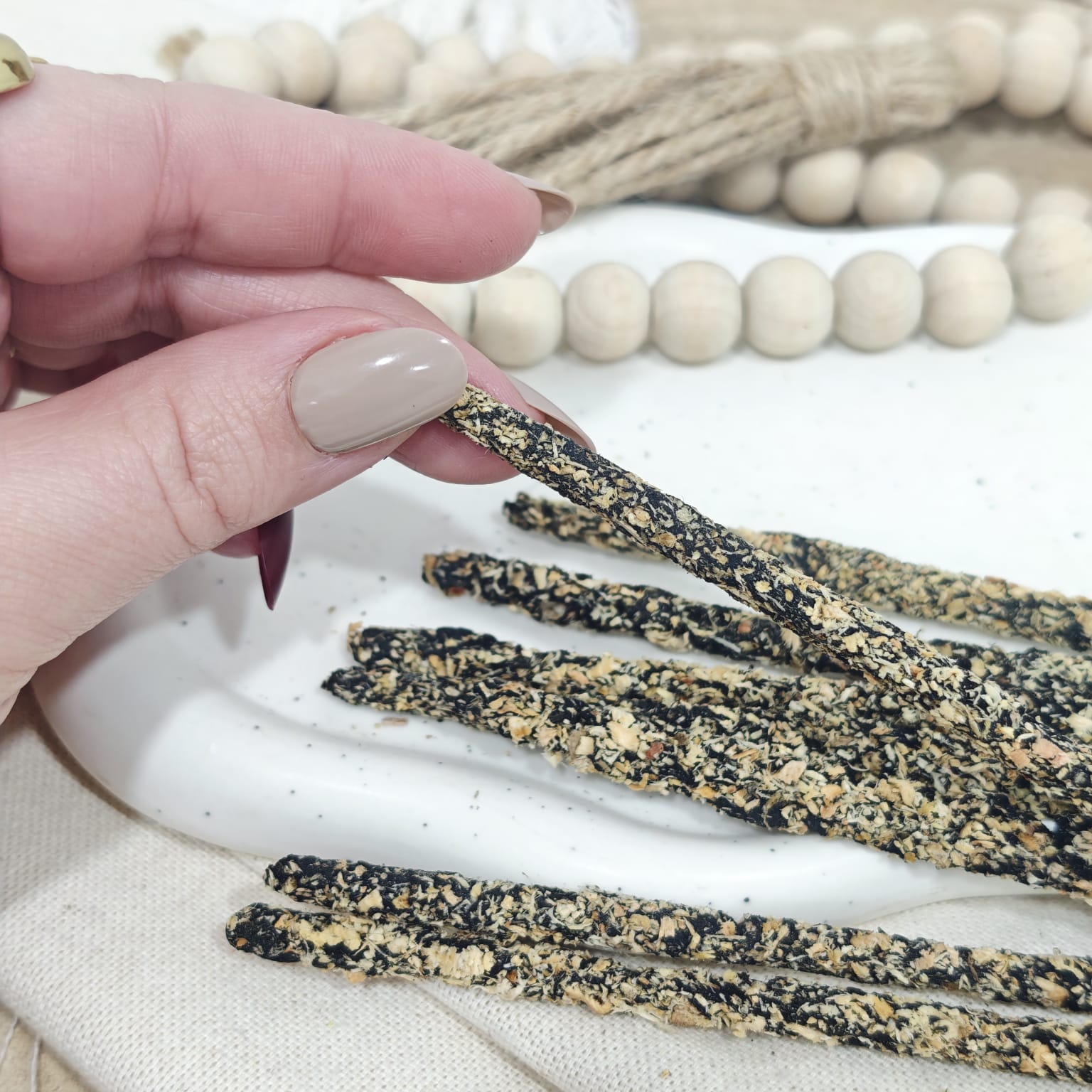 Un aroma profundo que limpia, centra y envuelve. Ritual Bosque Sagrado es un incienso artesanal elaborado a base de plantas naturales, con una combinación poderosa de Palo Santo, Sándalo y Cedro.