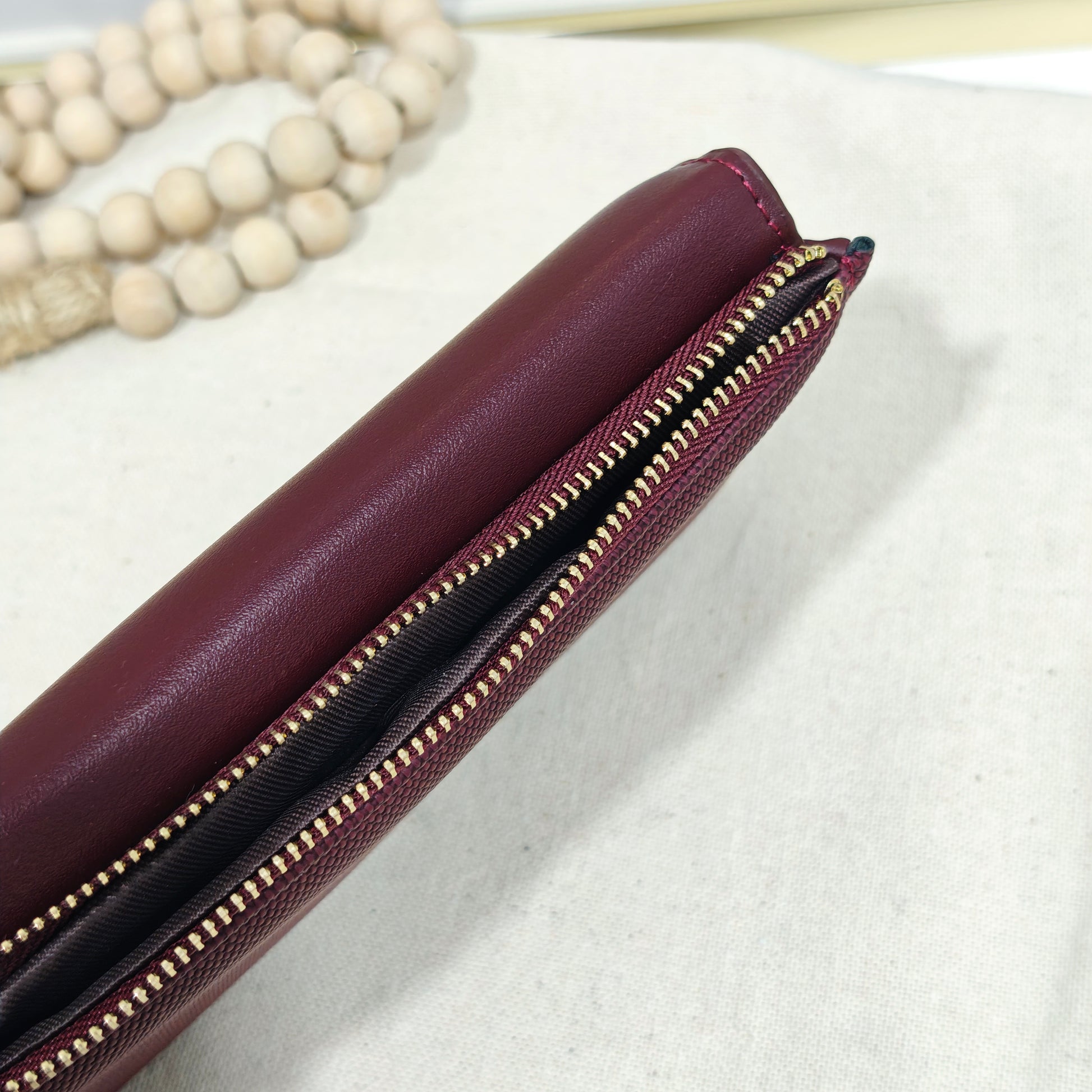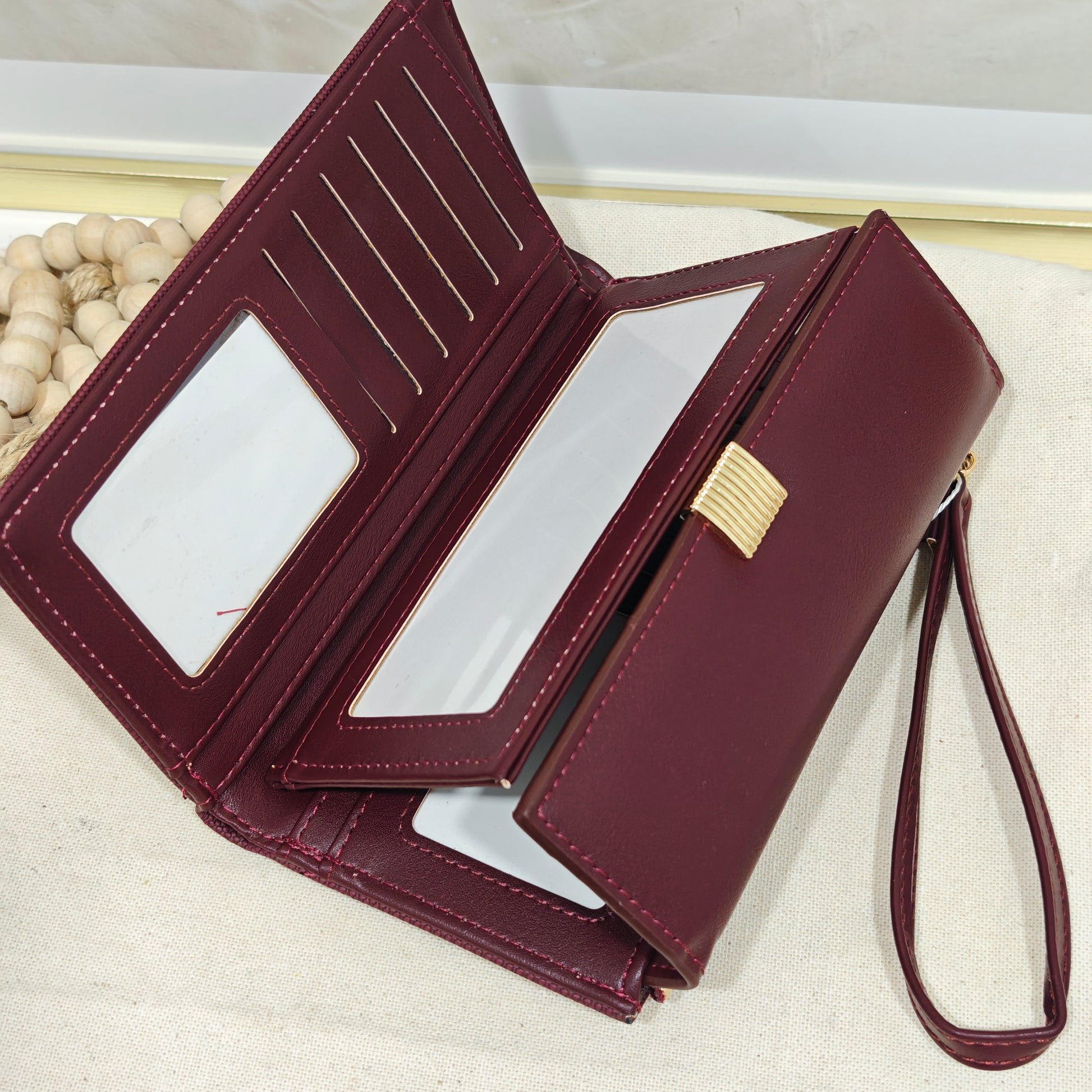 Fabricado en polipiel de alta calidad, cuenta con múltiples ranuras para tarjetas, ventanillas transparentes para documentos y un amplio espacio para billetes y monedas.