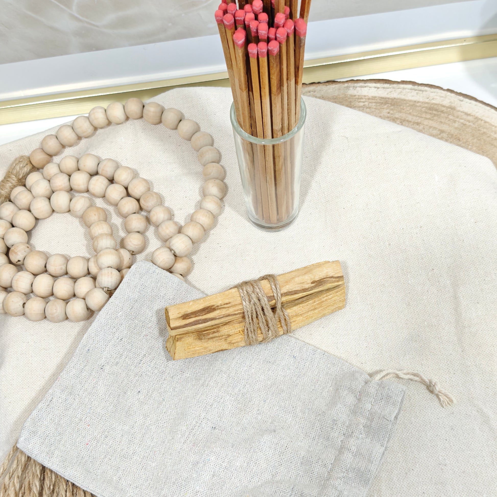 Pack de 3 Palos Santo 100% naturales, seleccionados por su alta calidad y aroma purificador. Cada conjunto viene cuidadosamente atado con cuerda natural y presentado en una bolsita de lino para mantenerlos protegidos y conservar su esencia. Ideal para limpiar la energía del hogar, atraer calma y crear un ambiente de bienestar y equilibrio. Un detalle perfecto para acompañar tus momentos de paz y conexión.
