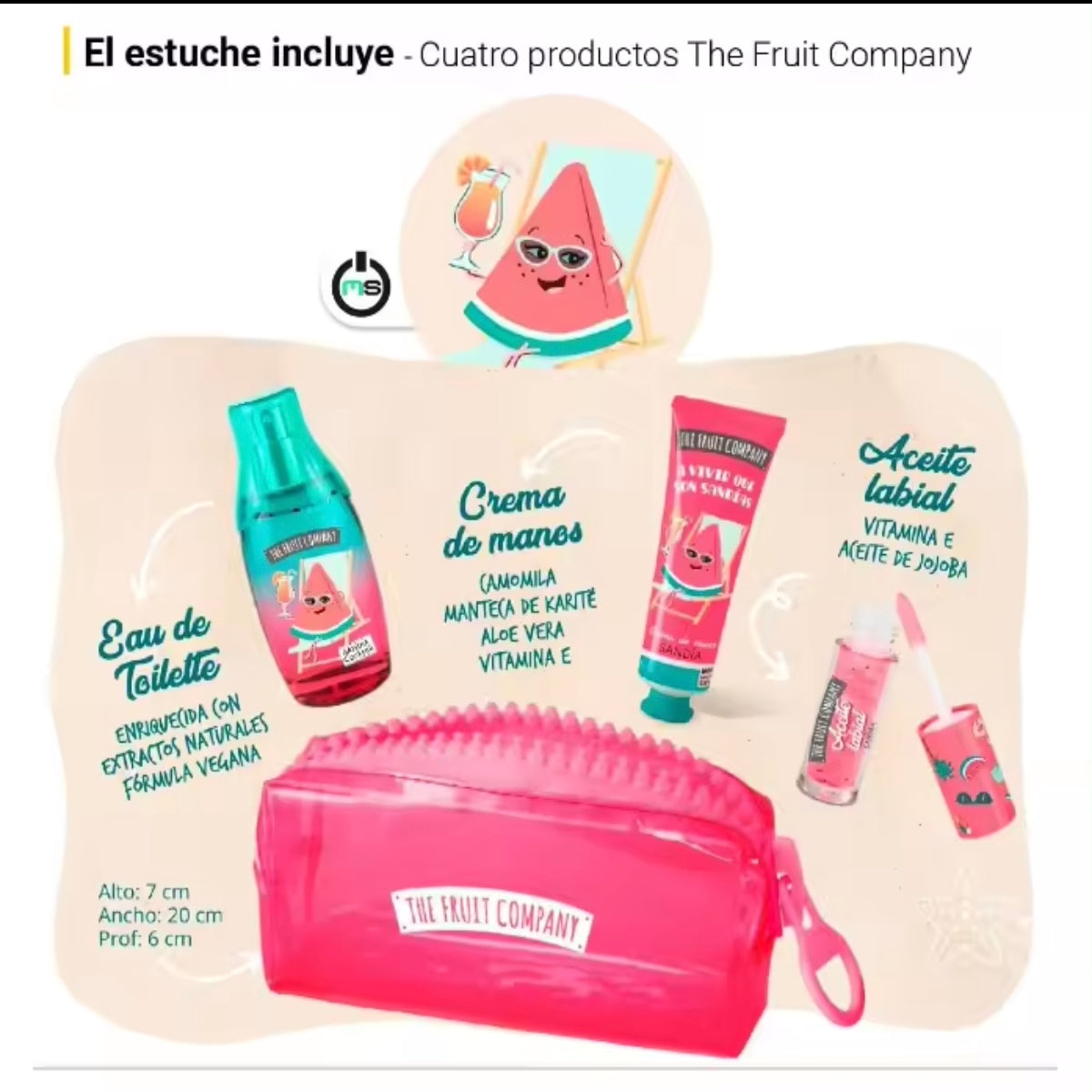 The Fruit Company Set Pack Regalo Summer SANDÍA | Aceite Labial, Crema de Manos, Colonia Eau de Toilette + Neceser de Mano Estuche | Edición Verano